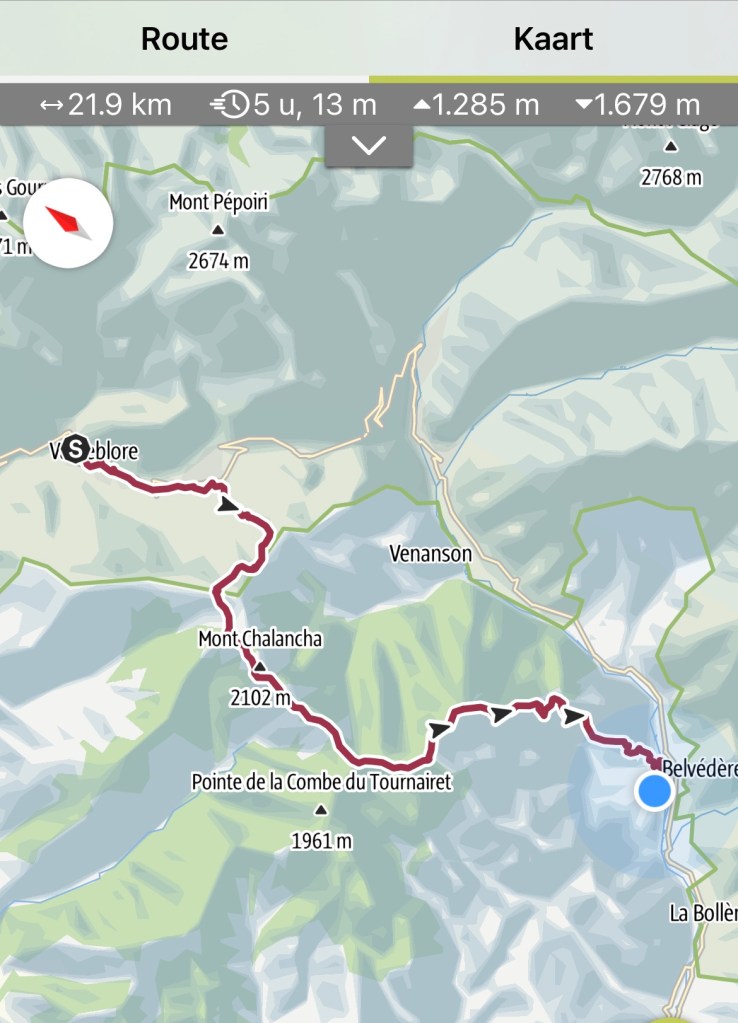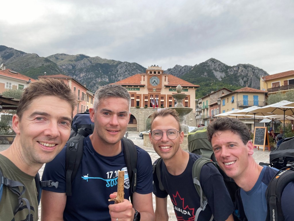 19u30: eindelijk aangekomen… Dat hadden we niet zien aankomen. Wat een moordende tocht: 1450 hoogtemeters en 1700 dalende meters. De beklimming naar col des deux Caïres en de 7km lange afdaling (1300 dalende meters) naar Roquebillière zullen ons nog lang heugen.
